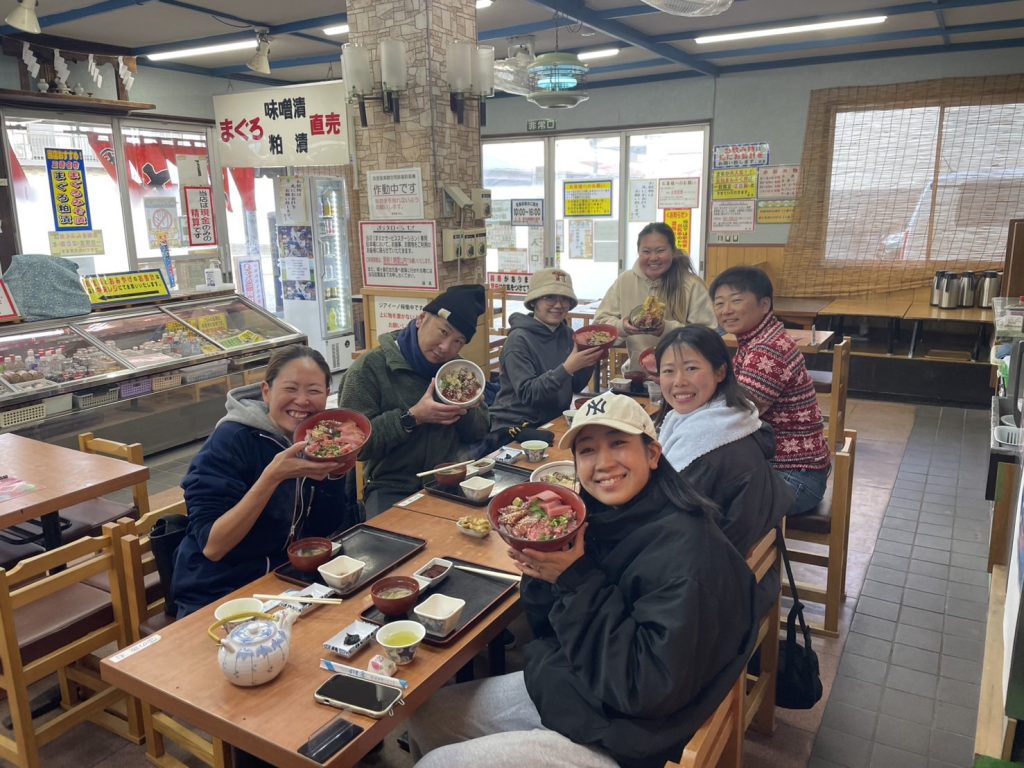 岩のりもいただきまして、それからみんなで協力して、大好きな海産亭に滑り込んでおいしい干物とお刺身をいただき、