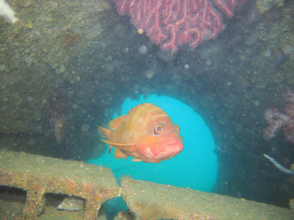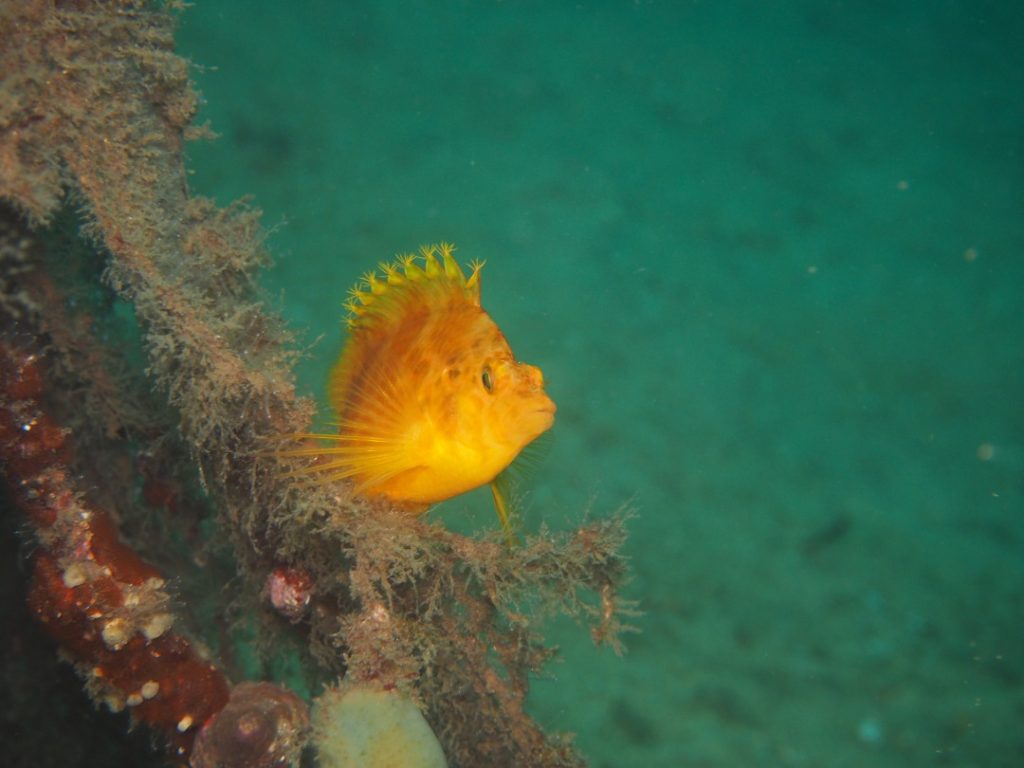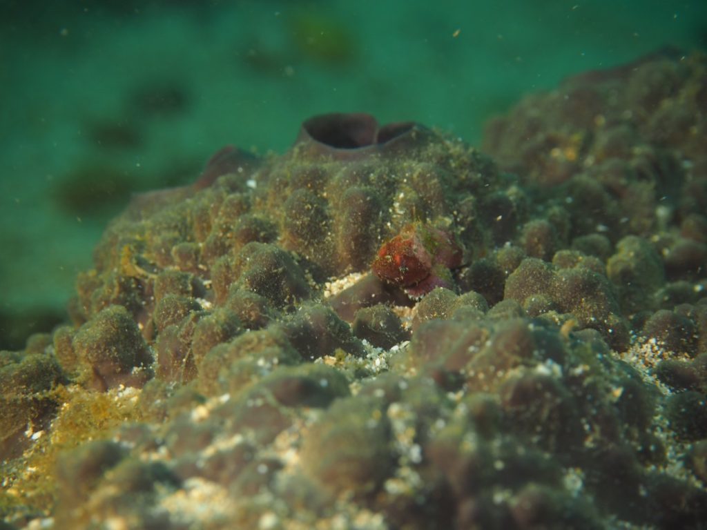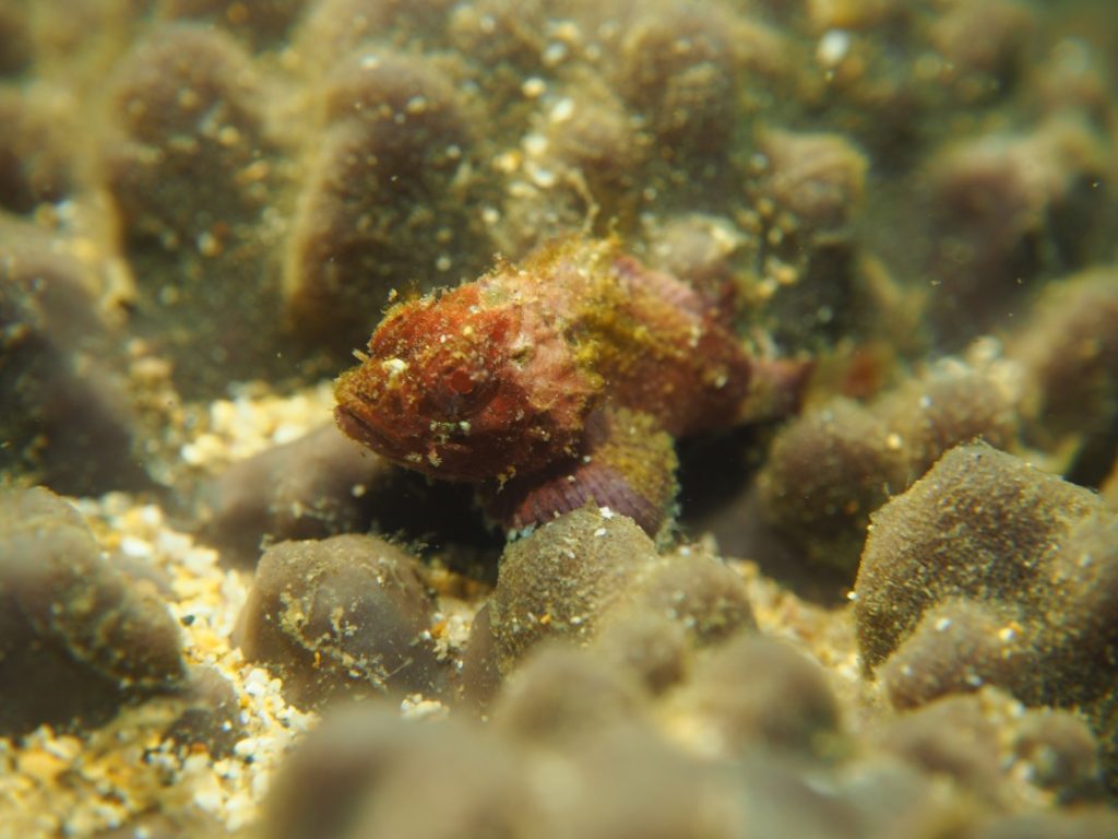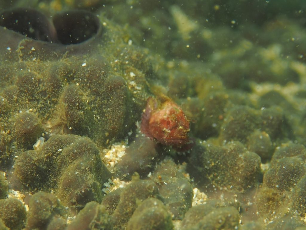 そしてカイメンにポツンと乗っかったカサゴの子供。