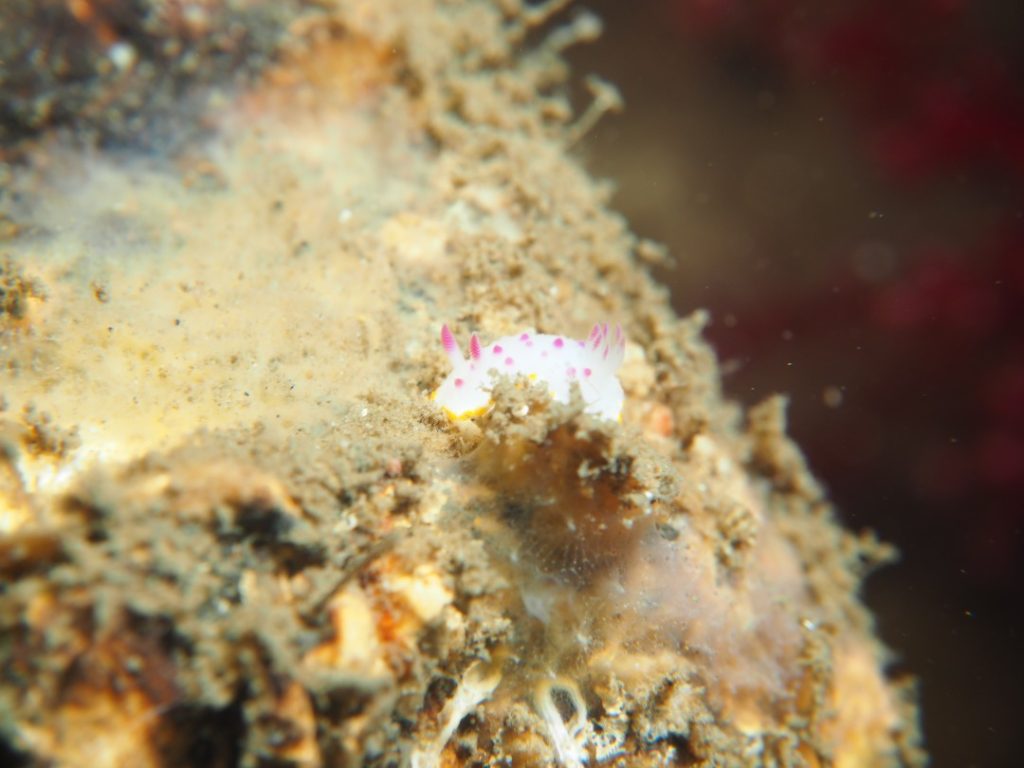 泥地に点々としている石をじーっくり見ると色んなウミウシが見つかったり、土管を覗けばベニカエルが佇んでたり、、、